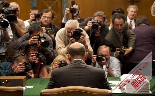 4月27日,在美國首都華盛頓國會山,高盛首席執(zhí)行官勞埃德·布蘭克芬(中)出席參議院國土安全和政府事務永久委員會就高盛事件舉行的聽證會。新華社/法新