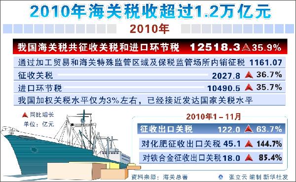 圖表:2010年中國海關稅收超過1.2萬億元 新華社發