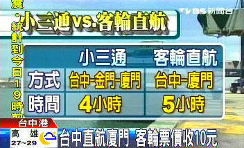 臺(tái)中直航廈門,首航促銷船票只要10元新臺(tái)幣。(圖片來源:臺(tái)灣TVBS電視臺(tái))