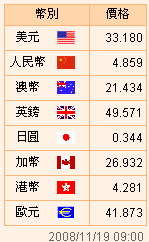 臺幣匯率公告2008.11.19