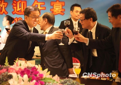 4月6日,剛剛抵達(dá)臺(tái)灣的上海市長(zhǎng)韓正在下榻的臺(tái)北晶華酒店,出席上海臺(tái)協(xié)會(huì)、臺(tái)北浦東同鄉(xiāng)會(huì)、崇明同鄉(xiāng)會(huì)的聯(lián)合宴請(qǐng),在臺(tái)北與臺(tái)商、鄉(xiāng)親見(jiàn)面,鄉(xiāng)音鄉(xiāng)情濃。 中新社發(fā) 羅欽文 攝