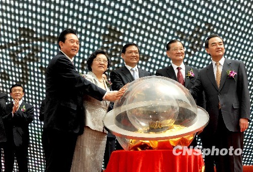 開街儀式上,中共中央政治局委員、北京市委書記劉淇,全國(guó)政協(xié)副主席、臺(tái)盟中央主席林文漪,中臺(tái)辦、國(guó)臺(tái)辦主任王毅,連戰(zhàn)夫婦、臺(tái)灣霧峰林家董事長(zhǎng)林芳英等臺(tái)灣各界人士到場(chǎng)祝賀。(記者 路梅)
