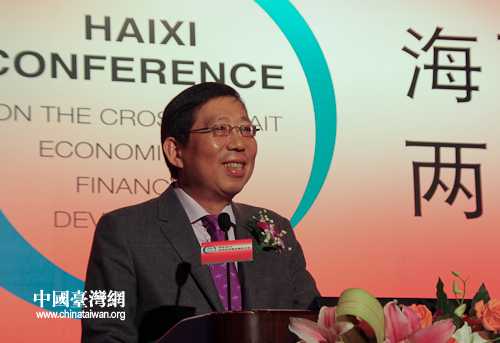 海西2012兩岸經(jīng)濟(jì)暨金融研討會(huì)12日上午首度在北京登場(chǎng)。廈門大學(xué)鄔大光副校長(zhǎng)出席并致辭。(中國(guó)臺(tái)灣網(wǎng) 楊麗 攝)