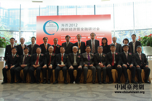 海西2012兩岸經(jīng)濟(jì)暨金融研討會(huì)12日上午首度在北京登場(chǎng),圖為參與研討會(huì)的兩岸產(chǎn)官學(xué)界菁英合影留念。(中國(guó)臺(tái)灣網(wǎng) 楊麗 攝)