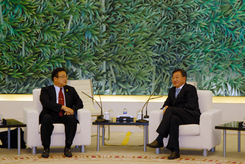 今天上午,商務部副部長姜增偉在京會見了亞洲臺灣商會聯合總會會長張峰豪一行。圖片來源:商務部網站