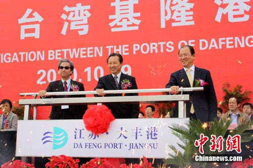 19日上午11時18分,隨著中共鹽城市委書記趙鵬一聲宣布,鹽城地方政府官員與臺灣基隆港物流協(xié)會會長共同啟動拉桿,一艘“寶宏8號”貨輪緩緩離岸駛向臺灣基隆港,江蘇大豐港與臺灣基隆港實現(xiàn)首次直航。