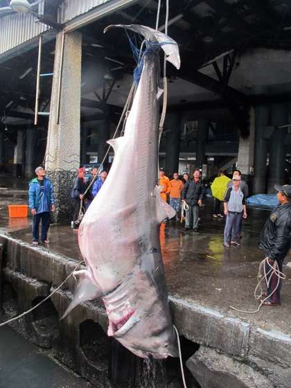 臺(tái)灣東部漁民半個(gè)月內(nèi)第3度捕獲重逾2噸大白鯊