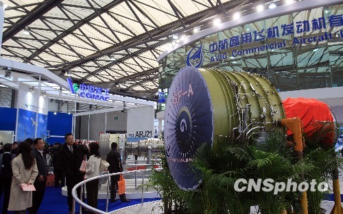 資料圖:2009年11月3日,可匹配未來(lái)“國(guó)字號(hào)”大飛機(jī)C919的首款國(guó)產(chǎn)飛機(jī)發(fā)動(dòng)機(jī)模型,在上海2009中國(guó)國(guó)際工業(yè)博覽會(huì)上亮相,這預(yù)示著中國(guó)正在邁出大飛機(jī)心臟國(guó)產(chǎn)化研制的重要步伐。該發(fā)動(dòng)機(jī)型號(hào)SF-A,是一款推力范圍為12000至13000公斤力(kgf)的大涵道比渦扇發(fā)動(dòng)機(jī)。 中新社發(fā) 潘索菲 攝