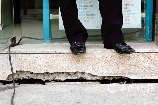西岸茶城:沉降達12厘米之深,臺階與柱子下的石板間足以放下一只手。