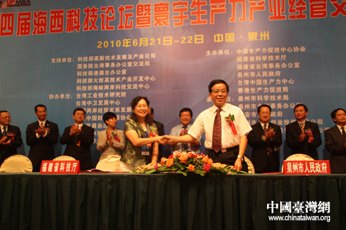 中國臺灣網(wǎng)6月21日泉州消息 第四屆海西科技論壇暨寰宇生產(chǎn)力產(chǎn)業(yè)經(jīng)管交流論壇今日上午在泉州開幕,開幕式上,舉行了福建省科技廳與泉州市政府廳市合作協(xié)議簽訂儀式。