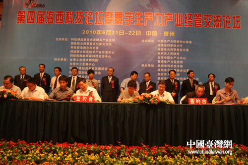 中國(guó)臺(tái)灣網(wǎng)6月21日泉州消息 以“加強(qiáng)科技創(chuàng)新 服務(wù)中小企業(yè)”為主題的第四屆海西科技論壇暨寰宇生產(chǎn)力產(chǎn)業(yè)經(jīng)管交流論壇今日上午在泉州開(kāi)幕,海峽兩岸科技合作項(xiàng)目對(duì)接簽約儀式同期舉行。