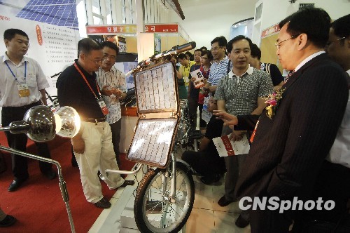 6月23日,一種利用太陽能發(fā)電驅(qū)動的“光動車”亮相首屆海峽兩岸電博會,受到眾多客商青睞。當(dāng)日,由海峽兩岸攜手舉辦的首屆海峽兩岸電機(jī)電器博覽會在福建寧德市揭幕,250多家臺灣企業(yè)的代表及來自美國、英國、法國、東南亞等電機(jī)主銷區(qū)的采購商、經(jīng)銷商等逾6000名嘉賓參會。 中新社發(fā) 王東明 攝
