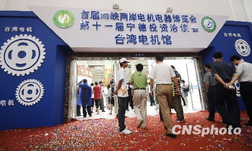 6月23日,一個專設(shè)的臺灣電機(jī)館亮相首屆海峽兩岸電博會。當(dāng)日,由海峽兩岸攜手舉辦的首屆海峽兩岸電機(jī)電器博覽會在福建寧德市揭幕,250多家臺灣企業(yè)的代表及來自美國、英國、法國、東南亞等電機(jī)主銷區(qū)的采購商、經(jīng)銷商等逾6000名嘉賓參會。 中新社發(fā) 王東明 攝