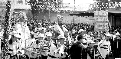 臺灣的“烑神”活動其實是一種偶像戲。“烑神”典禮開始時,廟宇抬出模仿開漳先賢神像的紙制偶像,20位青壯年立即隱身于這些偶像中,并抬起偶像隨古樂舞蹈。每座偶像由脫胎紙漆材料做成,高約3米,其腰部裝飾紙制猛獸頭,“獸口”大開。隱身于偶像的青壯年頭部剛好位于猛獸頭處,兩眼通過張開的“獸口”看路。臺灣“烑神”源于唐代的“軍陣舞”,如今,這些古時“烑神”儀式在閩南已很少看到,但它卻在臺灣代代相傳。這是中原古文化在臺灣發揚光大的又一例證。