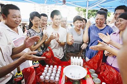 漳州今年已是第三年舉辦博餅活動。動感十足的街舞表演、變幻莫測的魔術表演、甜美的歌聲、搞怪的主持……昨日漳州天下廣場吸引了大批市民前來參與博餅,有爺爺帶著孫子、有父子齊上陣,更有一家扶老攜幼“全家總動員”的……