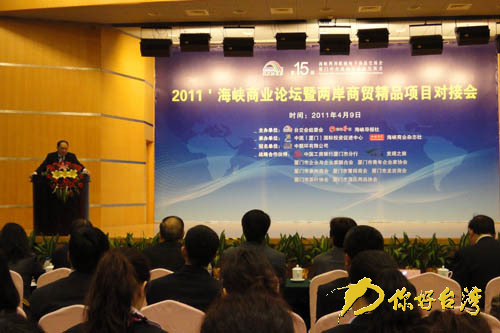 你好臺(tái)灣網(wǎng)廈門(mén)4月9日消息(記者 盛志耘)今天(9日)上午,正在廈門(mén)舉辦的第十五屆臺(tái)交會(huì)組委會(huì)舉辦了“2011’海峽商業(yè)論壇暨兩岸商貿(mào)精品項(xiàng)目對(duì)接會(huì)”,這一務(wù)實(shí)性論壇吸引了兩岸300多名企業(yè)家同聚一堂,共商合作。