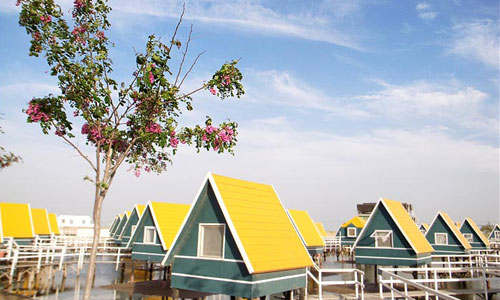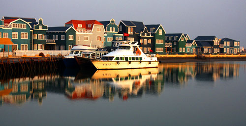 唐山灣國際旅游島位于河北省唐山市東南部濱海,在樂亭縣西南部,距北京230公里,唐港高速可直達。旅游島包括菩提島、祥云島、月島及周邊島嶼,總面積73平方公里。其中,菩提島是世界觀鳥基地,島上有潮音寺和朝陽庵,并稱“海天佛國”;祥云島金沙細浪,有中國的“馬爾代夫”之稱;月島因形狀酷似彎月而得名,也是賞月的絕佳去處,另有幾百間荷蘭風情的水上木屋。