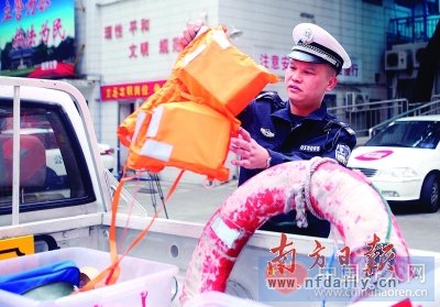 宋炳芬正在整理隨車的救生器材。南方日?qǐng)?bào)記者 曾強(qiáng) 攝