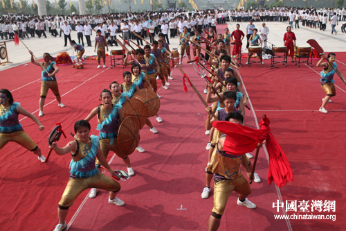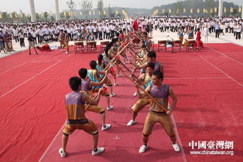 臺(tái)灣特色“宋江陣”獻(xiàn)演兩岸炎帝神農(nóng)祭祀大典(中國(guó)臺(tái)灣網(wǎng)趙輝攝)