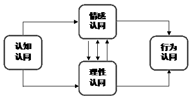 大學生對社會主義核心價值觀的認同沿著認知認同——情感認同——理性認同——行為認同遞進式發(fā)展,是一個從感性到理性、從內(nèi)在情感到外在實踐反復進行的過程。認知認同是基礎,情感認同是催化劑,理性認同是關鍵環(huán)節(jié),行為認同是歸宿。認知認同可促進形成情感認同和理性認同,情感認同和理性認同會互相強化,進而通過行為認同得以體現(xiàn)。