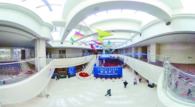 全國兩會(huì)新聞中心(全景相機(jī)拍攝)。新華社發(fā)