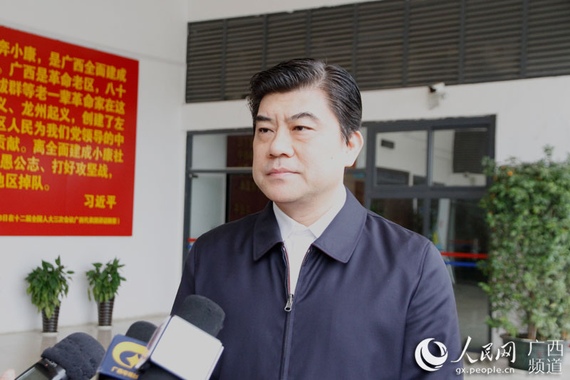 百色市委副書記、統(tǒng)戰(zhàn)部部長楊春庭接受媒體團(tuán)采訪,解答百色市扶貧攻堅(jiān)相關(guān)問題
