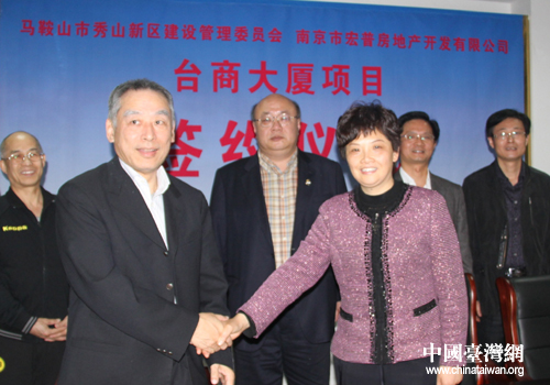 中國(guó)臺(tái)灣網(wǎng)5月3日馬鞍山消息 日前,由南京(臺(tái)灣)明木投資管理顧問有限公司和南京(臺(tái)灣)宏普房地產(chǎn)開發(fā)有限公司共同出資,馬鞍山市政府鼎力支持的馬鞍山臺(tái)商興業(yè)大廈在風(fēng)景秀麗的秀山新區(qū)舉行了正式的簽約儀式。秀山新區(qū)指揮長(zhǎng)龔玉芝、南京(臺(tái)灣)宏普房地產(chǎn)開發(fā)有限公司董事長(zhǎng)段津薪共同在項(xiàng)目書上簽字。