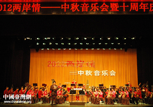 中國臺灣網9月29日合肥消息 9月28日晚,“2012兩岸情——中秋音樂會暨十周年慶典”在安徽藝術劇場舉行,來自臺北、高雄、臺南、臺中的二十多位臺灣音樂人和安徽省民族管弦樂團、安徽交響樂團的音樂人同臺演出,為合肥觀眾獻上了一臺精彩的中秋音樂會。