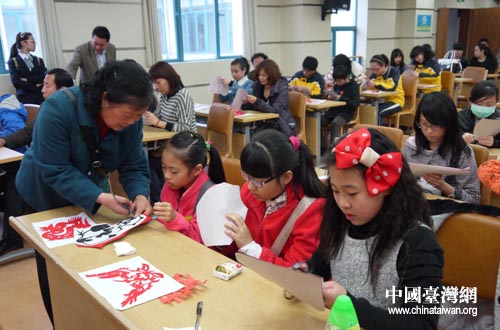 在瑯琊區文化館,臺灣師生們興致勃勃地觀看了傳統的花燈表演,參觀了名家書畫展,并與滁州的同學一起參加了剪紙藝術和書法培訓。在老師的悉心指導下,兩岸青年學生們興趣盎然,相互學習,一起制作了剪紙手工藝品。活動結束了,許多同學也成了好朋友,還相互留下了聯系方式。