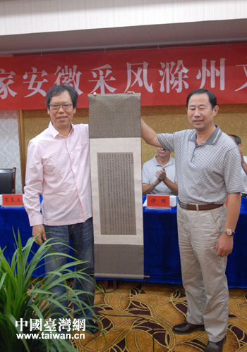 全國臺聯(lián)文化宣傳部副部長宋歌,安徽省臺聯(lián)秘書長朱祖春,滁州市政協(xié)副主席高遷、市臺辦主任文勇、市文聯(lián)主席路傳新等陪同考察。(中國臺灣網(wǎng)滁州臺辦通訊員 劉友春)