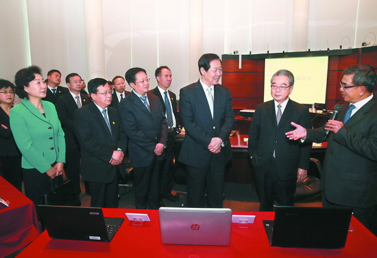 5月7日下午,省委書記張寶順率安徽經貿文化訪問團考察臺灣仁寶集團,許勝雄董事長(右二)介紹仁寶集團發展情況。記者徐國康攝