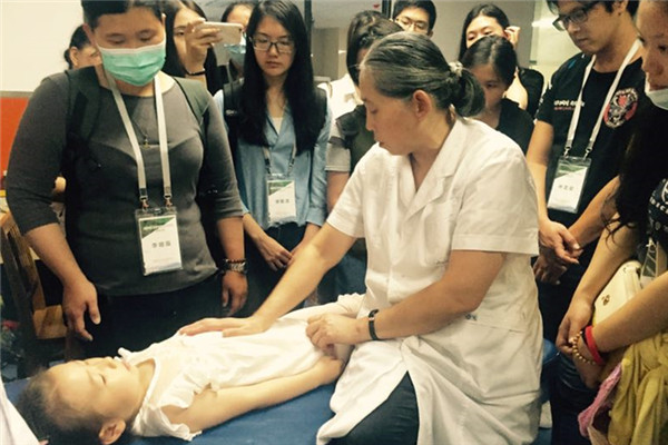 同學們在小兒推拿科遲遲舍不得走。孫安達主任、呂子萌主任跟前始終圍著同學們。中醫學2013級王彥婷同學說:“孫老師演示了用推陰陽、摩腹、補脾經、運內八卦等手法來健運脾氣,達到化食消積、化痰等作用。還有由腕推至肘腕的清天河水手法,來治療小兒發燒。其中最印象深刻的是老師捏脊的手法,快速精準卻輕柔,被施以手法的小兒并未啼哭,反而怡然自得,改變了以往我對捏脊會造成小兒不適疼痛的印象,令我收獲良多!