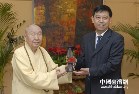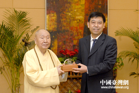 惟覺長老向陜西省臺辦主任閆超英贈送禮品