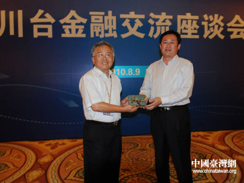 人民銀行成都分行、四川省銀監(jiān)局、四川省證監(jiān)局、四川省保監(jiān)局等4名負(fù)責(zé)人分別介紹了四川銀行、證券、保險(xiǎn)等金融行業(yè)發(fā)展情況,臺(tái)灣中小企業(yè)銀行董事長(zhǎng)、臺(tái)灣信托同業(yè)公會(huì)理事長(zhǎng)羅澤成先生等7名臺(tái)灣銀行、保險(xiǎn)、證券、票券、信托等金融企業(yè)機(jī)構(gòu)負(fù)責(zé)人也分別對(duì)臺(tái)灣金融行業(yè)發(fā)展情況進(jìn)行了簡(jiǎn)要介紹,并就銀行、證券、保險(xiǎn)、票據(jù)等金融業(yè)務(wù)進(jìn)行了交流,對(duì)ECFA簽署后川臺(tái)金融業(yè)合作商機(jī)等進(jìn)行了探討。