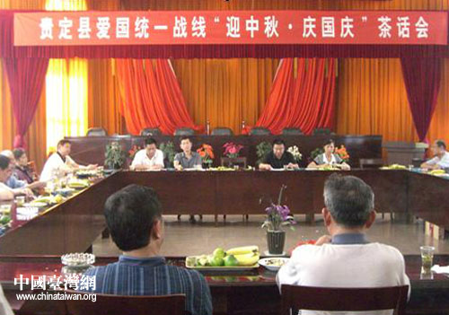 中國臺灣網(wǎng)9月21日貴定消息 日前,貴州省貴定縣隆重舉行了愛國統(tǒng)一戰(zhàn)線“迎中秋·慶國慶”茶話會。來自貴定的臺胞臺屬代表、僑胞僑眷代表、非公有制經(jīng)濟人士代表、少數(shù)民族代表、宗教界代表、無黨派人士代表以及統(tǒng)戰(zhàn)系統(tǒng)成員單位代表等共計70余人歡聚一堂,喜迎中秋,暢談發(fā)展,齊議和諧。