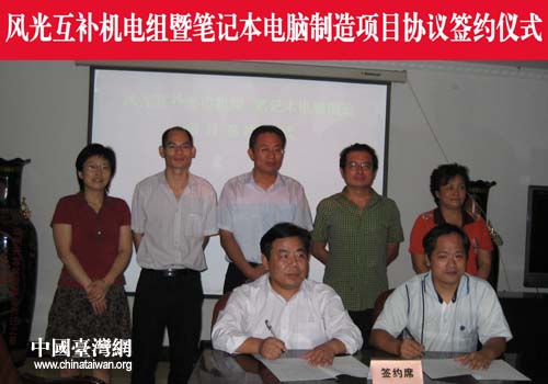 中國臺灣網10月25日池州消息 日前,浙江省湖州市臺灣同胞投資企業協會常務副會長賴玉敏一行至安徽省池州市經濟開發區考察,雙方達成并簽訂了總投資3000萬美元的“風光互補機電組、筆記本電腦制造”項目協議。