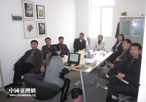 鐵嶺市臺辦調研人員聽取有巢工作人員介紹產品(圖片來源:鐵嶺市臺辦)