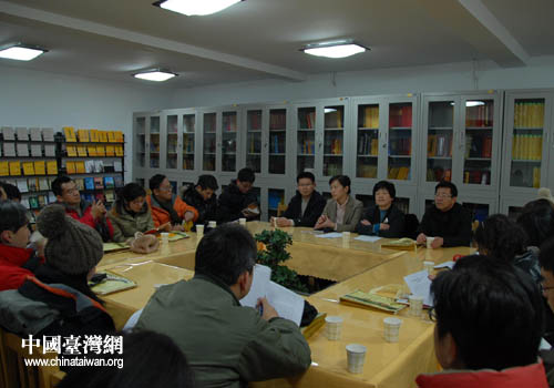 臺灣媒體記者參觀遼寧鞍山玉佛苑圖書室(圖片來源:鞍山市臺辦)