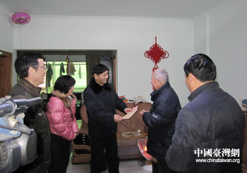 中國臺灣網1月26日鄖縣消息 1月26日上午,湖北鄖縣縣委常委、統戰部長焦宗啟在縣臺辦、縣臺聯會等負責同志的陪同下,看望慰問了94歲高齡的定居臺胞韓英奎和困難臺屬馮蘭英,并分別送去了500元、300元慰問金和新春的祝福。