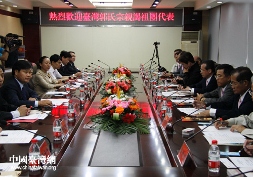 中國臺灣網(wǎng)5月24日三門峽消息 5月18日,臺灣郭氏宗親尋根謁祖暨文化商貿(mào)交流團(tuán)到河南三門峽市參訪,河南省臺聯(lián)會長郭晴接待、陪同。三門峽市委常委、統(tǒng)戰(zhàn)部長趙艷,副市長高戰(zhàn)榮等與交流團(tuán)一行舉行了座談會。