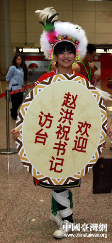 在機場歡迎趙書記訪臺的小姑娘。(浙江省臺辦王健 攝)