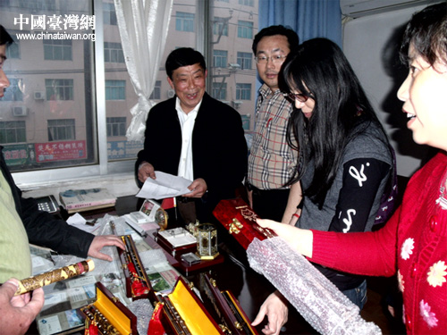 嚴守仁、嚴淑珍一行先到田坪鎮金竹村祭祖,之后在玉屏縣政協副主席、統戰部長羅友元、副部長臺辦主任楊芳等人的陪同下,參觀了玉屏縣簫笛廠。在玉屏簫笛廠,嚴守仁、嚴淑珍一行興致勃勃地參觀了簫笛陳列館,深入簫笛廠制作車間,觀看了簫笛的選料、鉆孔、雕刻等制作過程。嚴守仁、嚴淑珍對玉屏縣燦爛的簫笛文化、精美的簫笛產品贊不絕口,并當場購買了幾副簫笛帶回臺灣。