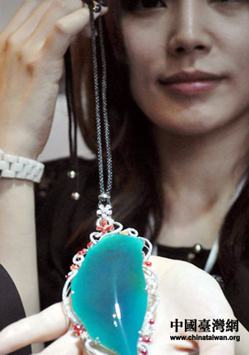 參展商品:臺灣島形藍寶石項鏈(圖片來源:沈陽市臺辦)