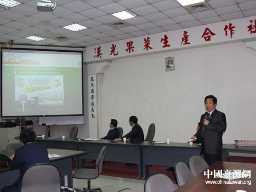 臺灣云林漢光果菜生產合作社董事長廖丁川介紹漢光關情況。(濰坊臺辦段文忠 攝)