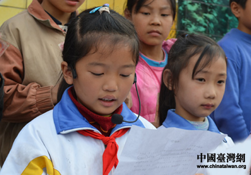 受助學(xué)生陳文靜宣讀感謝信。(圖片來(lái)源:南充市臺(tái)辦)