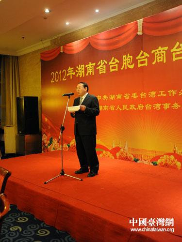 湖南省臺胞臺商臺屬新年團拜會在長沙舉行,中共湖南省委副書記梅克保致辭。(湖南省臺辦通訊員曾群輝 攝)