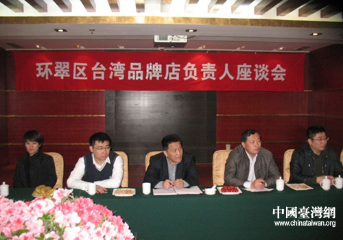 座談中,臺灣品牌店負責人分別介紹了各自品牌店的經營情況及存在問題,并就如何讓臺灣品牌店在環(huán)翠區(qū)做大做強交流了意見。