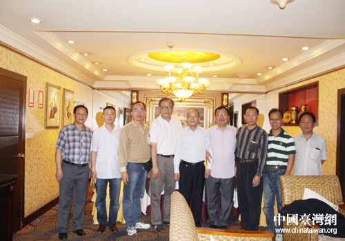 賀適鳴老先生(中)與貴陽市臺辦副主任劉筑琪(左一)、各位臺灣朋友合影留念。(貴陽市臺辦 王康 攝)