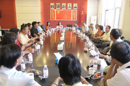 社區任青云主任對客人一行的到來表示熱烈歡迎,并熱情介紹了對社區的工作職能、服務理念、發展狀況等。賓主雙方就兩岸文化、社區工作、百姓生活等方面進行了廣泛的交流。在社區活動中心,參訪團還與書法家們、音樂家們等進行了互動交流,并合影留念。