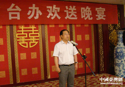 甘肅省臺辦主任趙少智在歡送晚宴上致辭。(圖片來源:甘肅省臺辦)